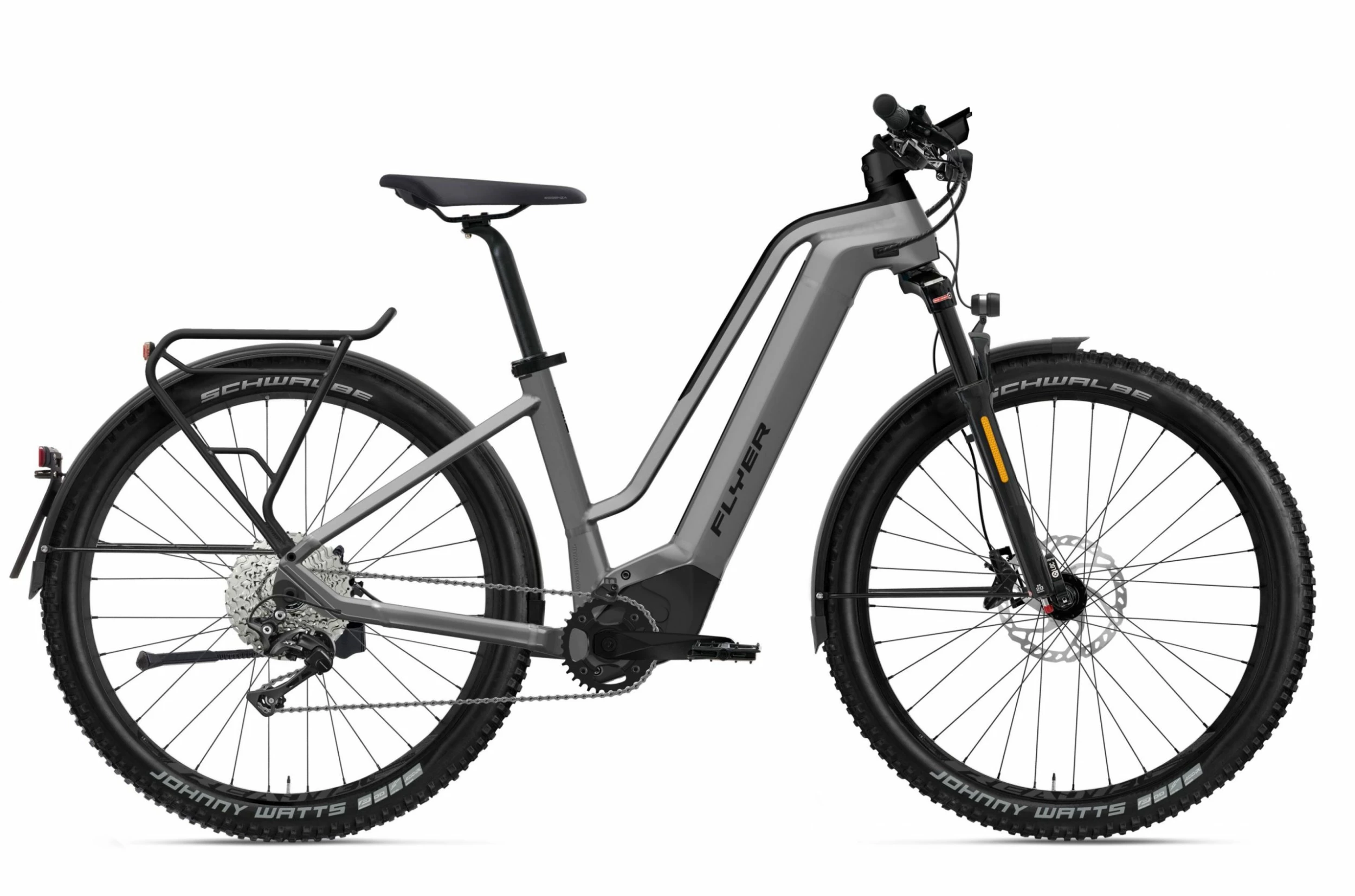 Le Flyer Goroc 2 6.30 HS 2022 est livré avec tout l’équipement nécessaire pour la ville ou les virées improvisées : garde-boue, porte-bagages, éclairage, réflecteur et béquille.